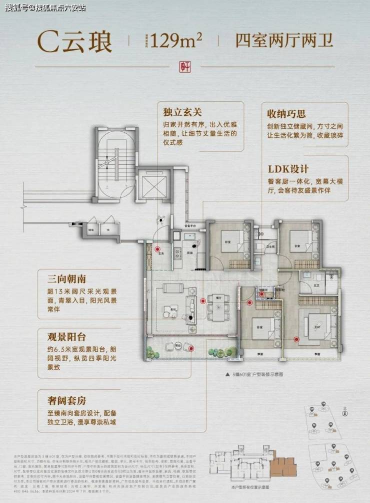 户型建面约129方: