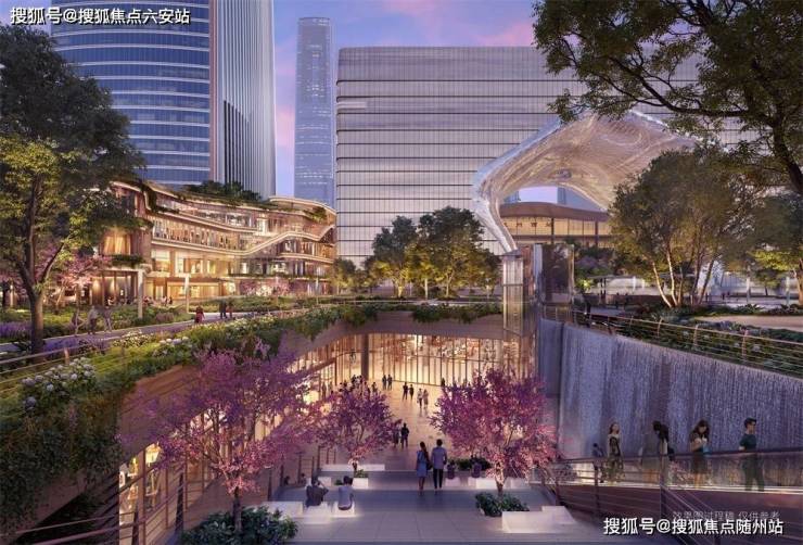 以茶田为设计灵感,与云门公园融为一体,勾勒出通透、开放的游园式消费体验,未来将成为千亿云城的生活中心。