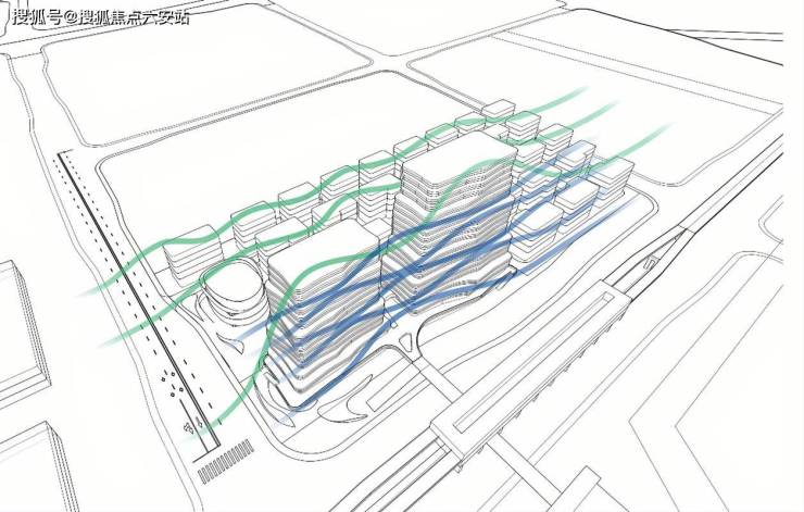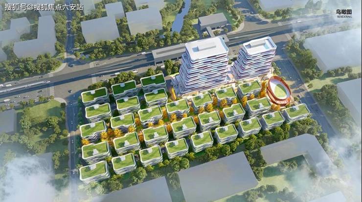 垂直森林建筑+2.5万㎡中央园林,种植香樟、樱花等乔木,打造“四季有景”景观轴;