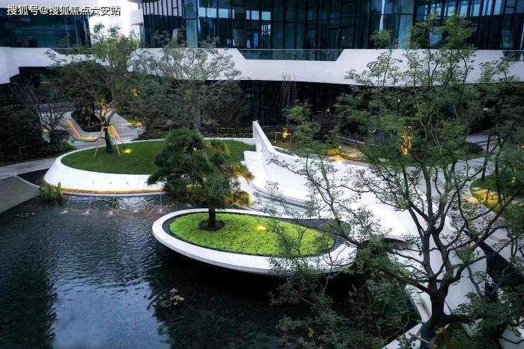 建筑设计与特色:园区建筑设计以湾流曲线立面为特色,白色曲线与垂直绿色系统相呼应,使建筑成为融入城市的实用景观