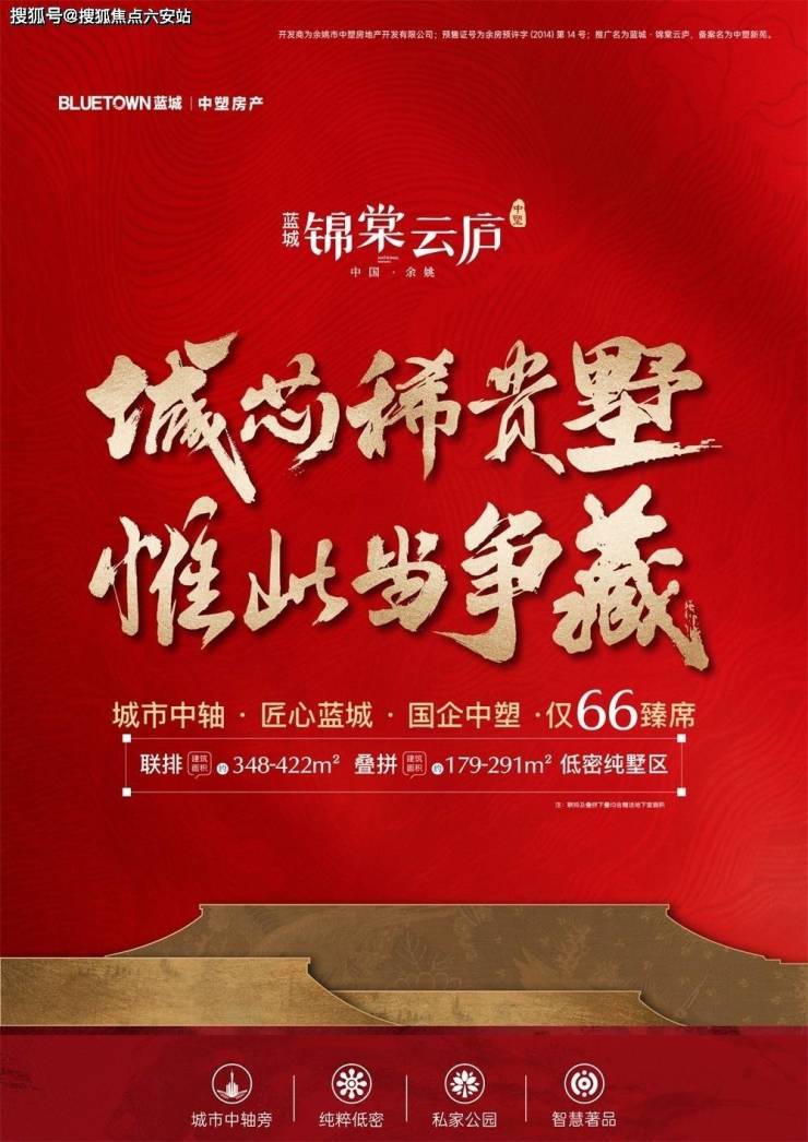 蓝城·锦棠云庐的特别,在于它用“双匠联袂”的品质、“融湾芯+中轴旁”的区位、“66席低密墅境”的稀缺,以及“全维配套”的便利,为余姚人勾勒出一幅“繁华与静谧共融、传统与现代共生”的生活画卷。这里没有浮夸的概念,只有蓝城的匠心、融湾的担当、低密的稀缺、配套的完善——建面约178㎡起叠拼、250㎡起联排、260㎡起大平层,总价230万起,正是余姚人“品质生活升级”的最佳选择。