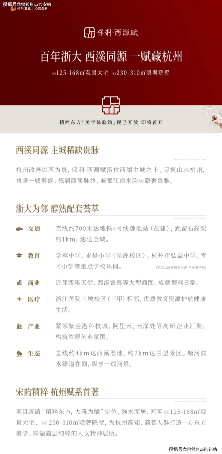▰▰ 杭州西湖区 保利·西源赋 火热销售中 ▰▰ 作为保利置业“赋系”落子杭州的首发之作,保利·西源赋坐落于西湖区三墩板块紫金港科技城核心,以“宋韵现代主义”建筑美学与纯改善定位,成为城西科创走廊上的现象级红盘。