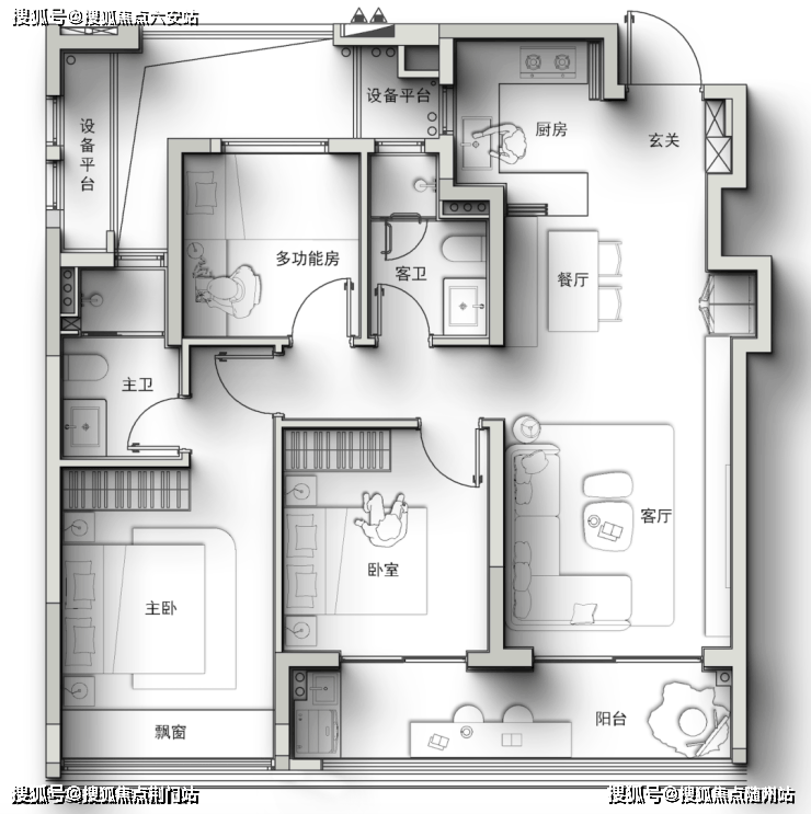 不仅做到了大边厅+四房,而且还带一个进深约2米的转角阳台(很多豪宅阳台进深也不过1.8米),就像自带一座空中花园。