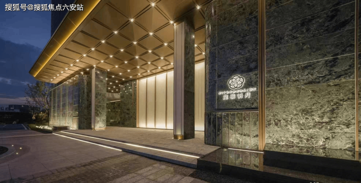 棠前明月以“奢级归家仪制”定义层峯礼遇:耗资千万打造超星级酒店主入口,超40米宽恢弘门楼,飞檐采用金顶折板+灯光嵌入形成“龙鳞”熠熠效果;两侧以大面积Prada绿奢石(天然石材)为主基调,金属线条包边,打造“步步尊崇”的归家门面,让每一次回家都成为身份的象征。