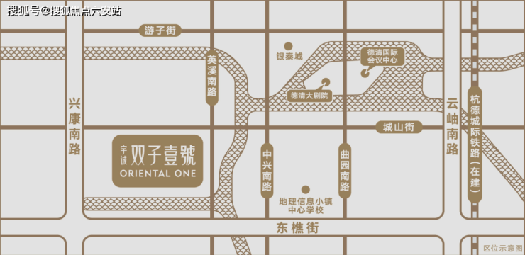 宇诚双子壹號位于浙江省湖州市德清县舞阳街道城山街与英溪南路交叉口,属凤栖湖板块核芯区位。项目踞守杭德轻轨枢纽,毗邻银泰城商圈与凤栖湖景区,是德清城南发展战略的重要节点。