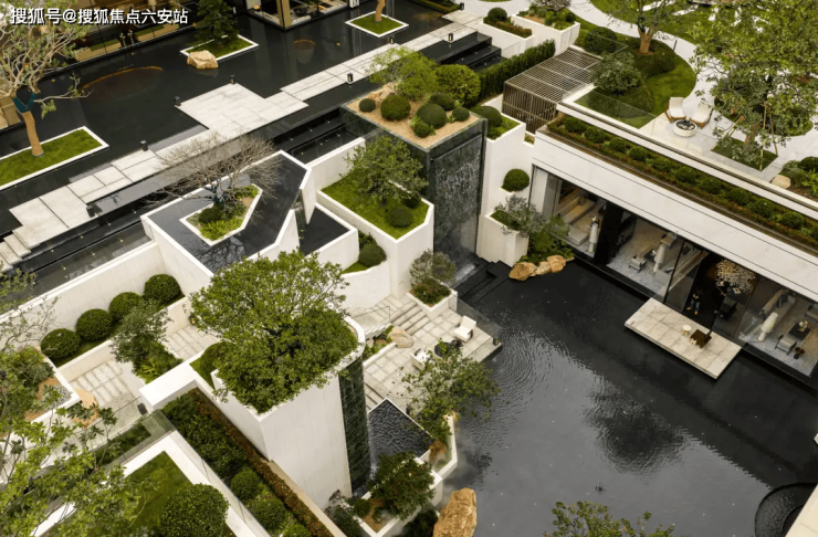 兴耀以多维垂直的角度,在沐芳洲打造了一个立体的、全境洄游的园林。下沉庭院、镜面水院、阳光草坪,生活与风景在这里立体交融。