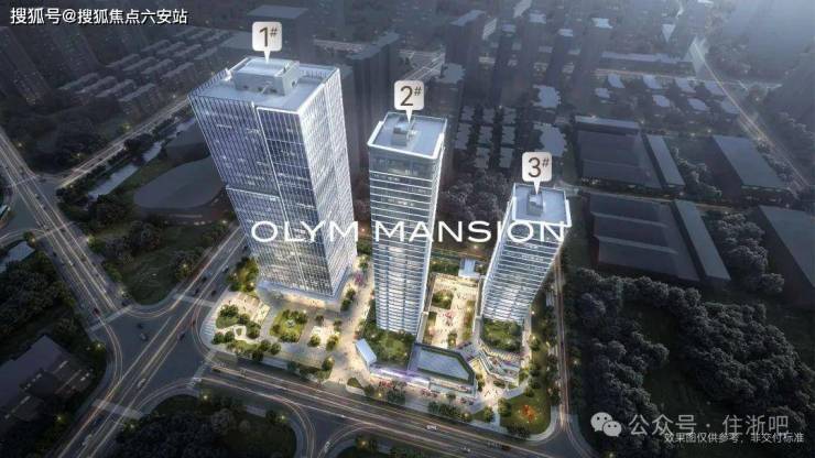 【建筑规划】:1号楼33F自持商务办公楼,2号楼38F、3号楼26F原生大平层4楼起售