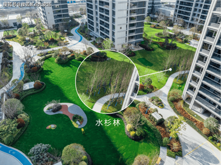 凤悦印湖的景观“C位”留给了3000㎡的大草坪,远看是满眼的绿意盎然,近看却能发现绿意下的“玄机”。