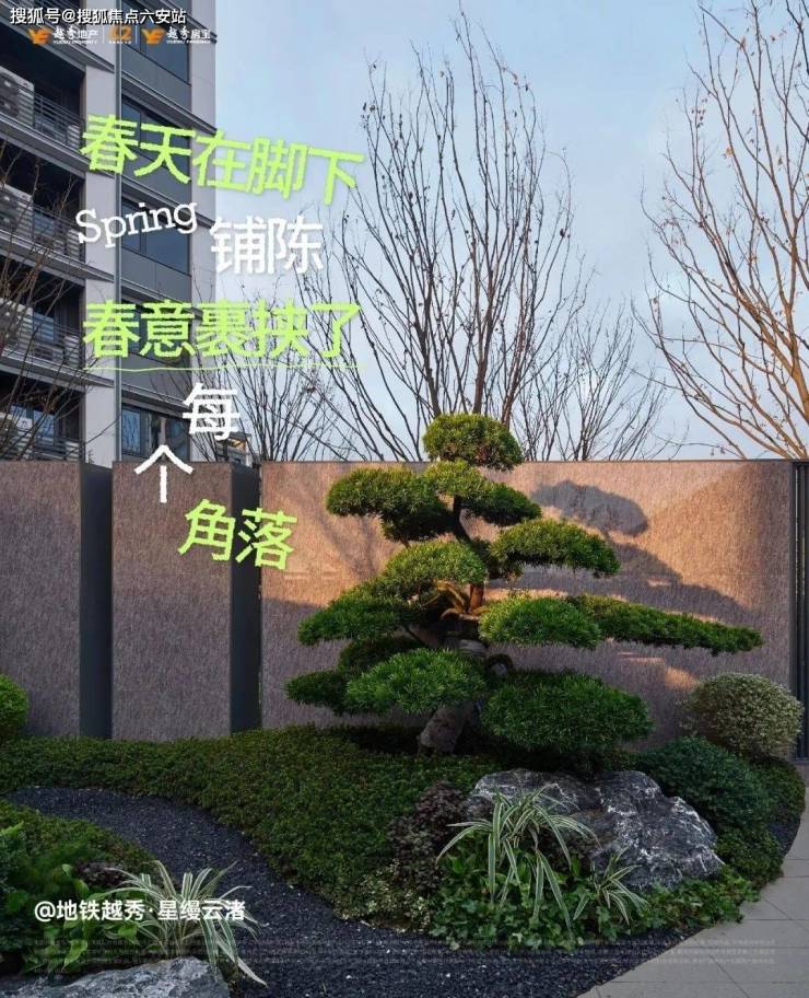 初夏时节,一场温暖且尊崇的归家之旅徐徐展开。映入眼帘的是S2西门入口,苍松迎客,潺潺入境,罗汉松以苍劲姿态并带着“幸福安康、吉祥富贵”的美好寓意,迎接着每一位业主的归家。