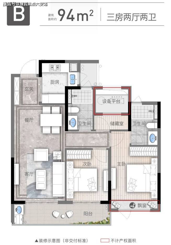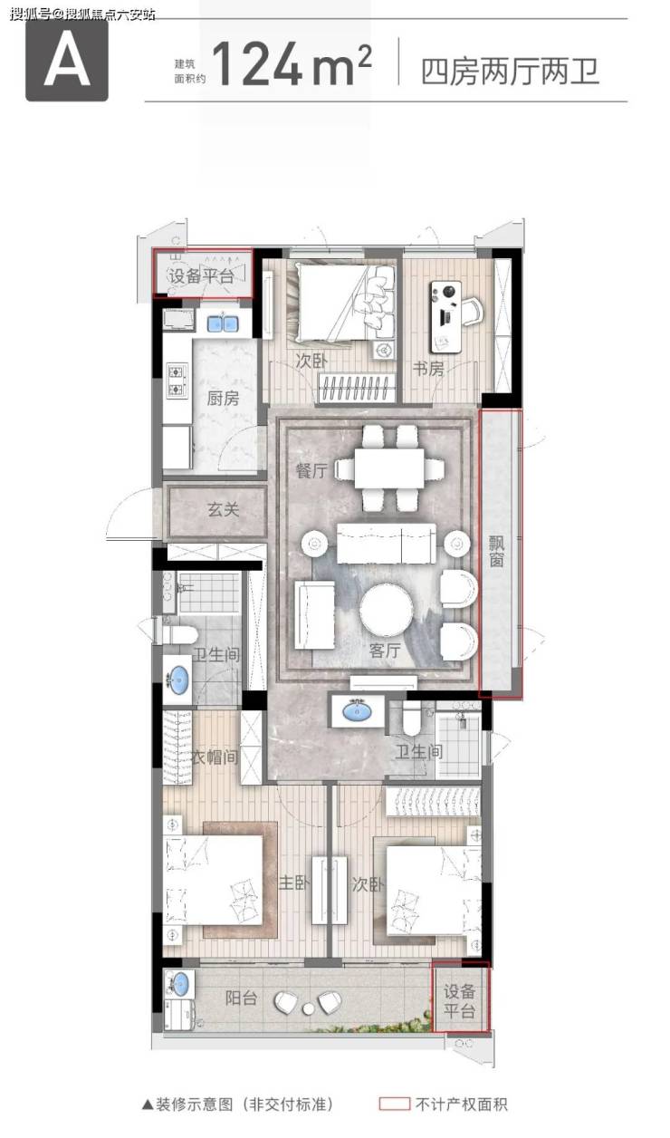 户型面积:主力94㎡三房两卫、124㎡四房两卫,全精装交付,标准约3000元/㎡(含科勒、西门子等品牌)