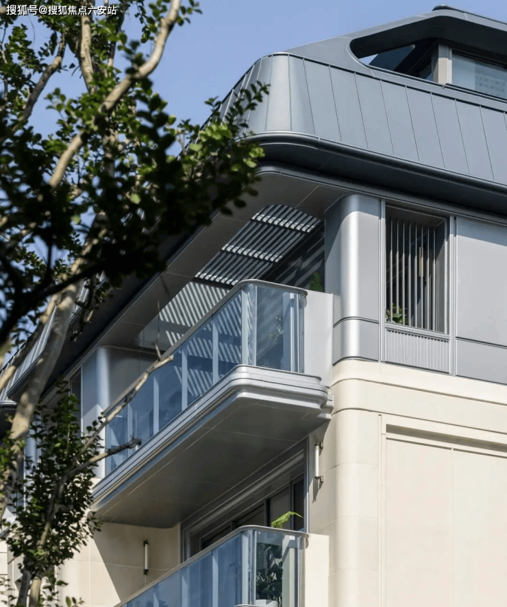 建筑立面采用经典三段式构图,采用米色石材,以及暖色仿石铝板搭配的形式,在转角及细部以精细的圆弧设计,赋予建筑柔和感,同时以景泰蓝奢石线条的点缀,打造当代摩登海派建筑美学。