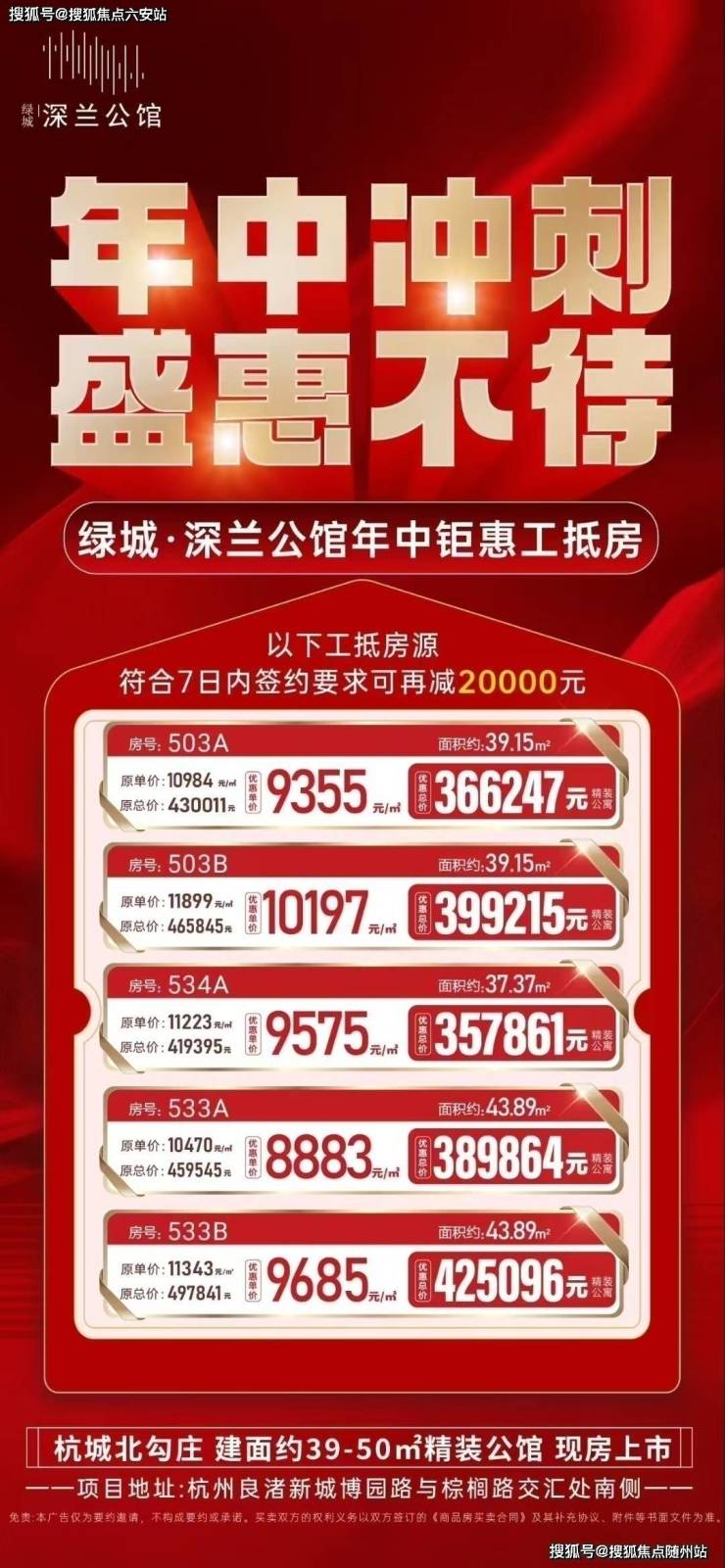 目前深兰公馆推出的工抵房(工程抵押房)特惠活动,将入门门槛进一步降低,精装产权公寓总价33万起。这一价格在杭州主城区尤其是良渚新城这样的核心区域具有明显竞争优势。