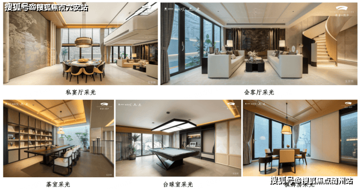 “有采光井” 不等于 “采光够用”。很多排屋项目的采光井狭小,整体采光偏暗。但丹青隐庐建面约265m2样板房南向一字型采光井布局+超配采光井数量、南北侧超27米超长采光面,让阳光以“漫反射”角度进入地下空间,不刺眼还够亮堂;地下空间的私宴厅、茶室、台球室、棋牌室等功能区都有充足光线,彻底打破“地下=暗室”的刻板印象。