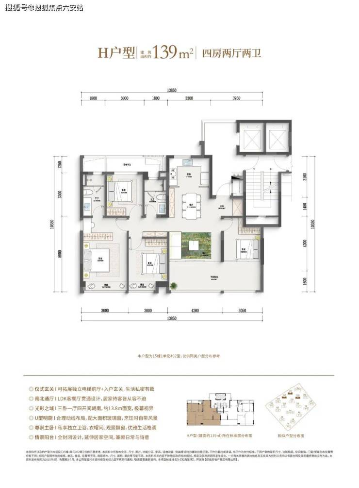 (四房户型,滑动查看更多户型图)