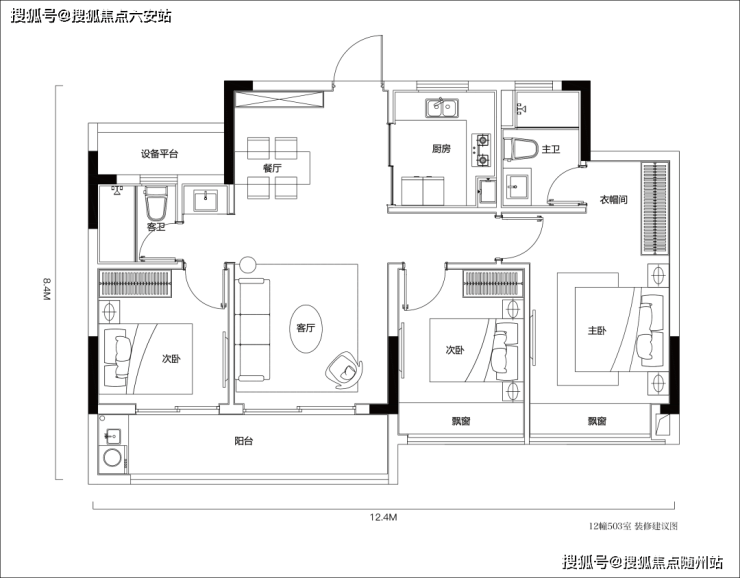 约100㎡户型点评:三房两厅两卫,南向四开间阳光户型,完整功能大三房 双飘窗,南向双开间 大阳台套房式主卧 全明双卫;