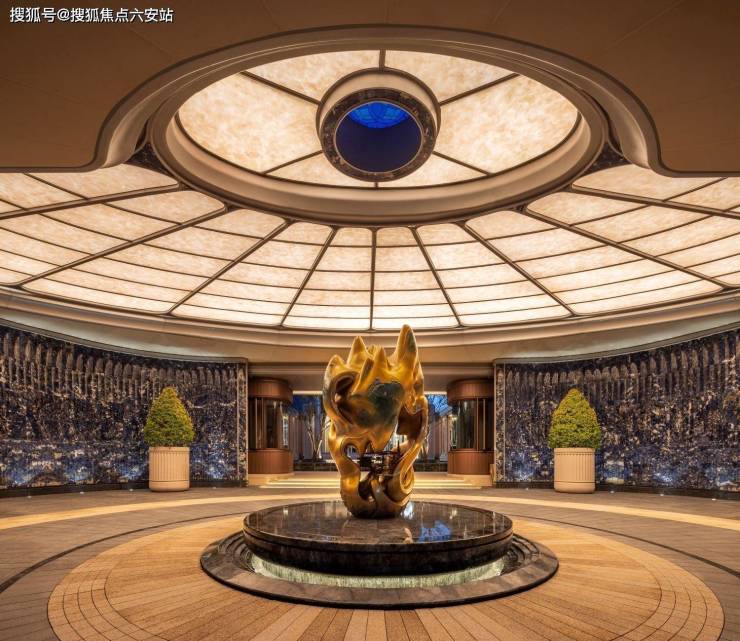 映入眼帘的是「帷幕玉廊」,搭配多重帷幕的门廊造型,叠加「天穹光庭」采用内凹环抱弧形墙面,上方穹顶形制,共筑酒店式环岛落客区,散发着尊崇的归家气场。
