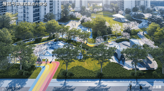 •中央公园:直线距离约300m,一期约4.2万方,已投入使用,设置入口迎宾广场、浪漫林荫大道、休闲下沉花园、生态阳光草坪、观景眺望平台、日式禅意花园六大主题。