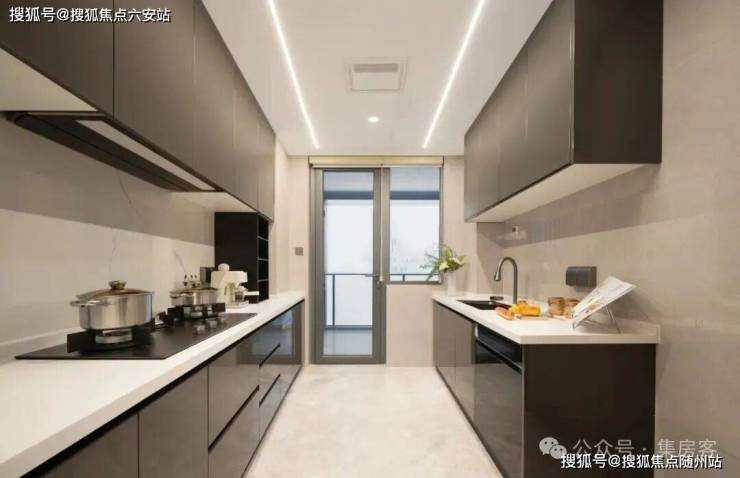16项厨卫系统中,标配方太全隐升降款油烟机、三眼灶、15件套洗碗机。顶上有奥普凉霸,灶台有岩板背景墙,不只实用,还细致关照厨房的“清洁动线”。