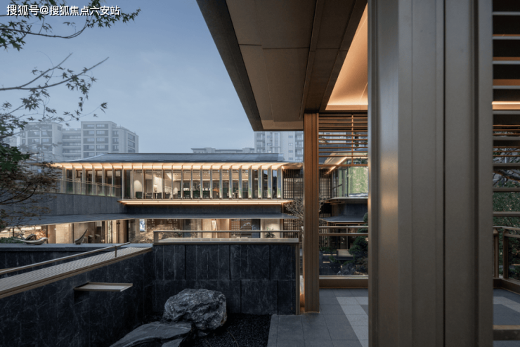 在东方屋檐和宋韵飞檐之上,融揉现代审美工艺,以卓越的窗墙比和大面积灰蓝玻璃,极简化打造光影天幕,倒映自然之境。同时,臻选靛蓝色的陶瓦,原创蓝金坡屋顶,掀起杭州合院立面的新序章。这种设计不仅保留了合院的私密性和围合感,还通过现代建筑手法的运用,让每一户都能享受到更多的自然光和通风。