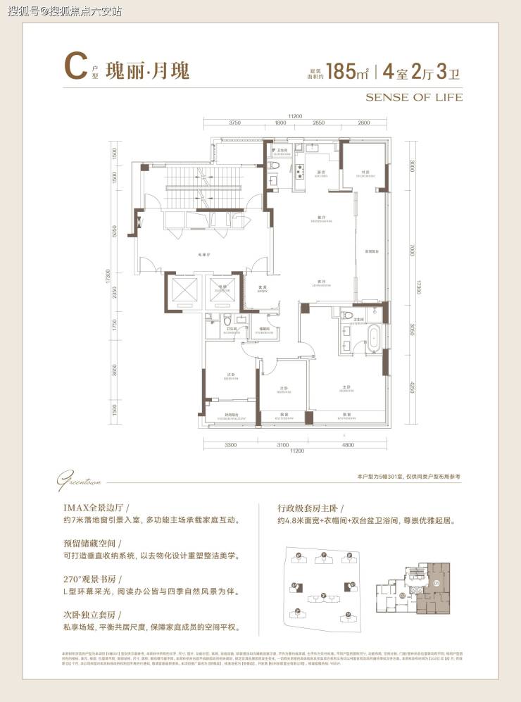 【户型面积】约149㎡、170㎡、177㎡、185㎡、220㎡