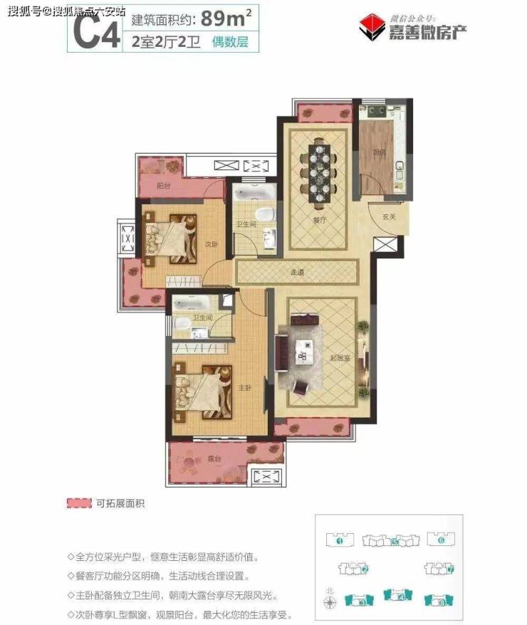【超高得房率】85%【赠送大露台】