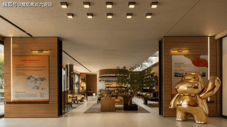 人民路上的百年香樟,是萧山人的归家记忆,崇璟和颂府在中央入口景观以一棵超大地径的香樟树与此和鸣。从香樟入口进入,在中央植入景观戏水池,水景和绿意相互呼应,也成为孩童肆意玩耍的主场。事实上整个疏朗的园区结合公共空间,共打造了「十大功能空间+四个架空层主题BOX」,没有浪费它的每一寸肌理,力求打造全龄段的无界社交场域。
