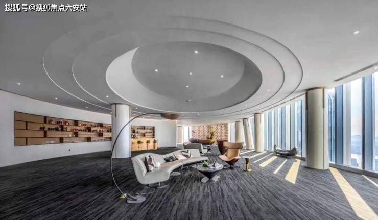 云端会客厅:位于60层的云端会客厅,设有天幕茶室、思享会议厅、总裁办公室、云端私宴厅等功能场域,可俯瞰西湖、钱塘江、滨奥全景,满足高规格商务接待需求。