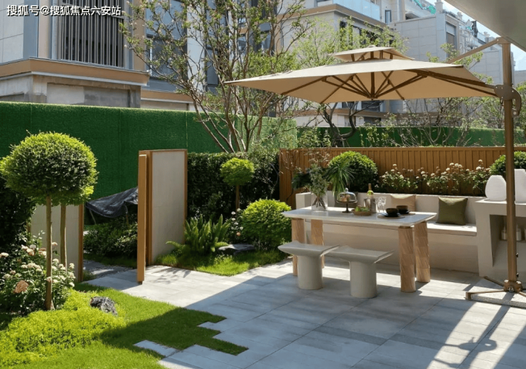 绿植葱葱、枯山水铺装,林姐踱步其中,似乎已在试想未来茶余饭后的生活,慢而惬意,无忧无虑。