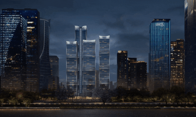 杭州绿发中心总建筑面积约43万㎡,由四幢塔楼组成摩天建筑群