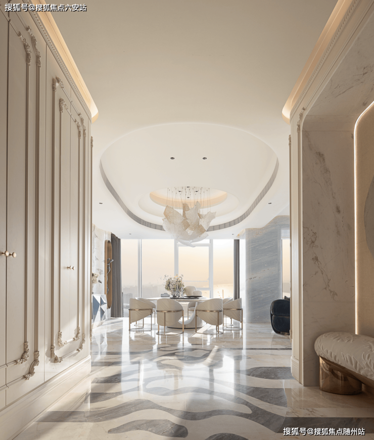4.2米层高与全景玻璃幕墙最大化引入自然光与江景,让居住者在家中即可欣赏钱塘江的潮起潮落。细节上,项目从情绪玄关的温润相迎,到悦己卫浴的私密独处;从MINI休闲区的静思片刻,到社交空间的欢聚时光,每个角落都在回应不同的感性需求,打造真正意义上的“高定情绪容器”。