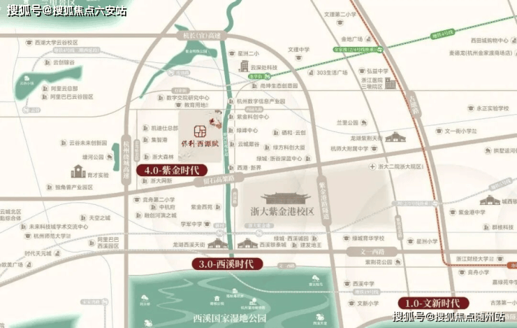 项目直线距离约1.5公里处就是一流名校浙江大学,由此衍生出西湖科技园、紫金创业园、云谷小镇等创新策源区,集合准独角兽企业有约300多家,已有企业总部约30余家,上市企业约14家……形成“产学研”闭环,是赋能杭州经济发展的强大引擎。