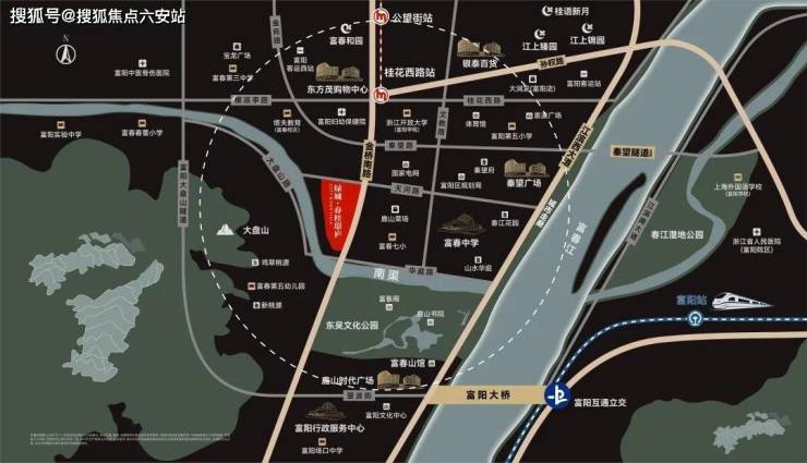 江景与公园:直线距离富春江约700米,东吴文化公园、大盘山、南渠天然河道环绕,负氧离子充沛。