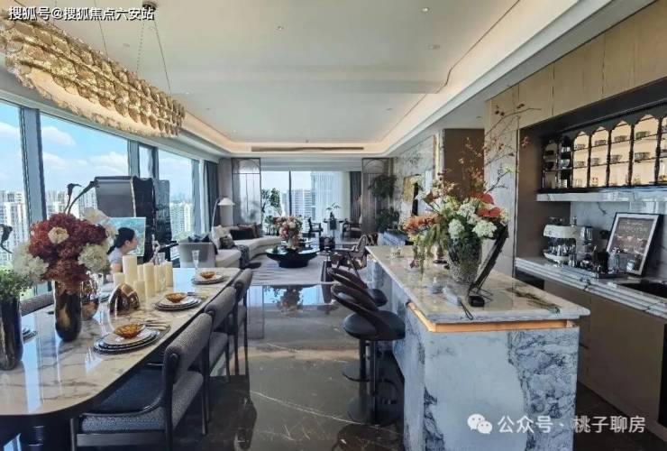 在产品设计上,项目特邀吴滨、梁志天、董鸣华等国际一线设计大师联袂操刀,将东方美学与现代设计语言深度融合。琚宾设计的“宋韵东方”样板间,以青玉石、皮革编织等质感材质,勾勒出雅致温润的居住氛围;建筑立面汲取杭州传统飞檐元素,采用Low-E玻璃幕墙与流线型金属格栅,荣获LEED金级预认证,在阳光下呈现出轻盈优雅的美学质感。社区内部打造约1.3万㎡“凤栖森林”主题园林,以“一栋一岛”的格局移植20年以上成树,搭配5000㎡中央景观区和八大社交场景,让建筑与自然完美相融。