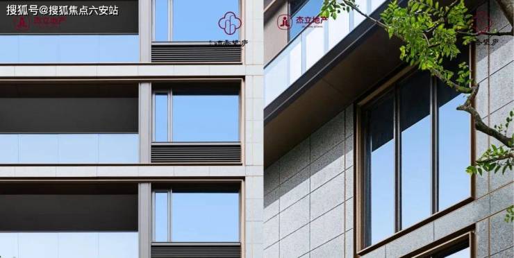 外立面采用四面铝板+三玻两腔玻璃,搭配爱马仕灰和蓝眼睛石材,融合坡屋顶、飞檐等元素,呈现现代东方气韵。