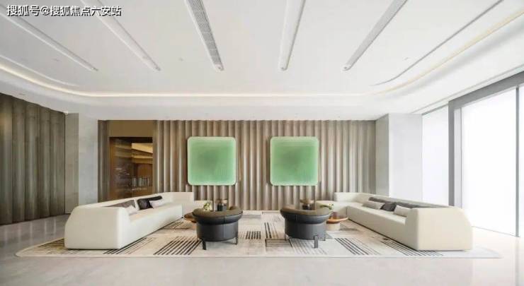 项目由GAD建筑设计院、邱德光、琚宾三大顶流团队联袂打造,融合ART DECO经典美学与现代NEO艺术。外立面采用香槟金铝板与LOW-E玻璃幕墙,几何线条呼应钱塘江潮涌;蓝眼睛石材悬挑雨棚、拱门连廊等设计,将《了不起的盖茨比》的摩登气质植入归家动线。