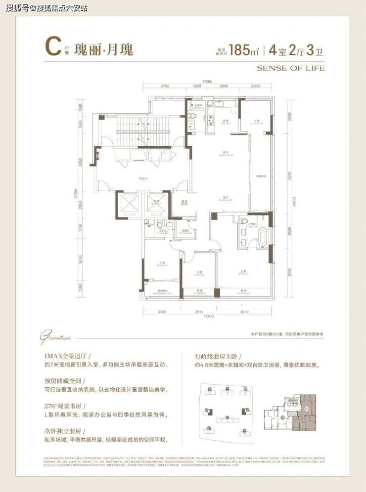 建面约185方户型,高品质的寰景奢宅: