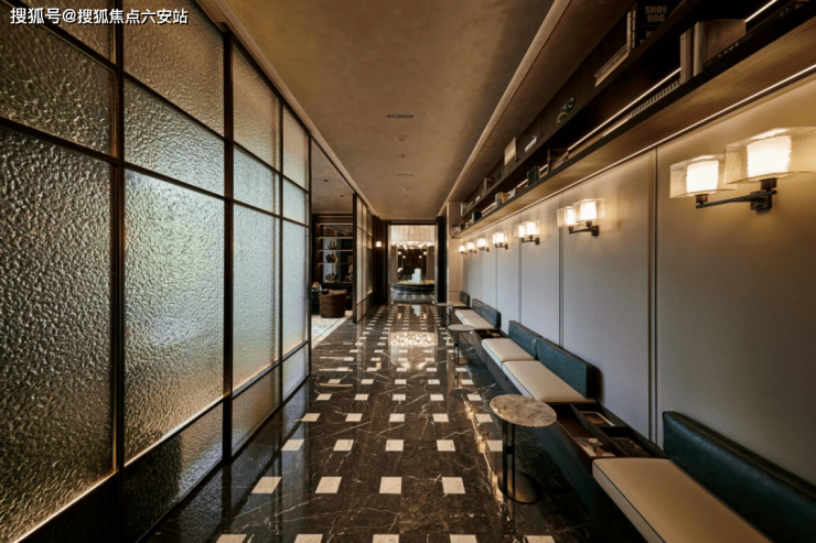 豪华酒店式门头,是整整用了一年时间才打磨出来的。香槟金吊顶,镌刻精致龙鳞祥云纹,细节处彰显高贵;通透质感的玻璃屏风与景观水系,两侧沿中轴展开,极致恢弘。