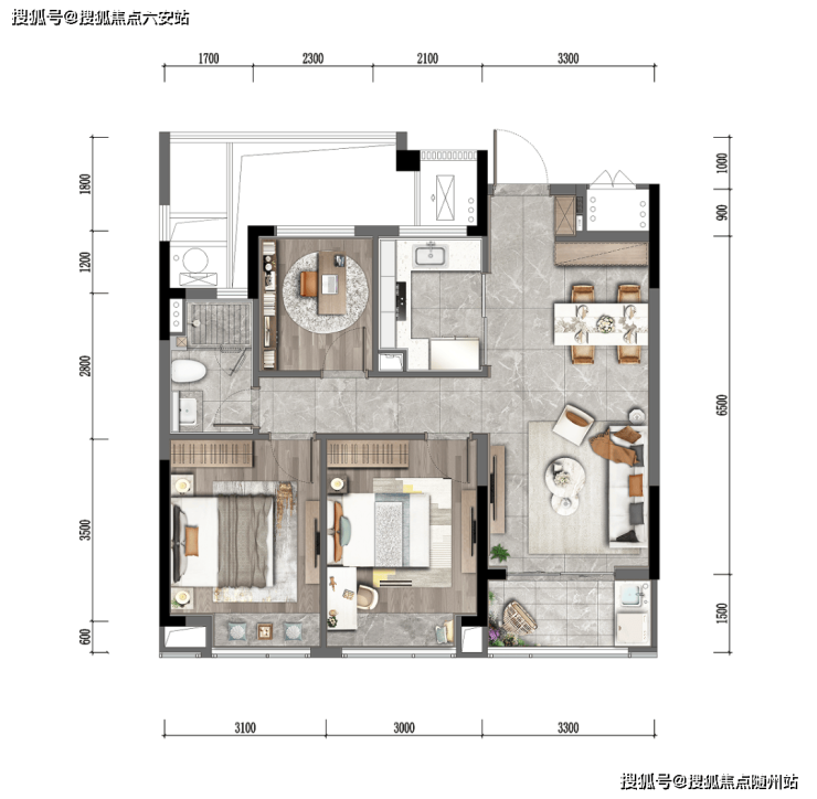 **106㎡**三房两卫约6米边厅+6.3米双联阳台+独立储藏室,可变“3+1”空间成长型家庭