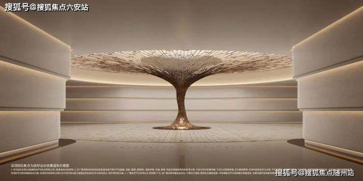 宾客甫至,三层挑空的前厅豁然展开,中央一株金属锻造的黄金树雕塑破空生长,迸发盎然生机,宛如与社区共生共荣的巨木,枝影扶疏,蔚然成观。