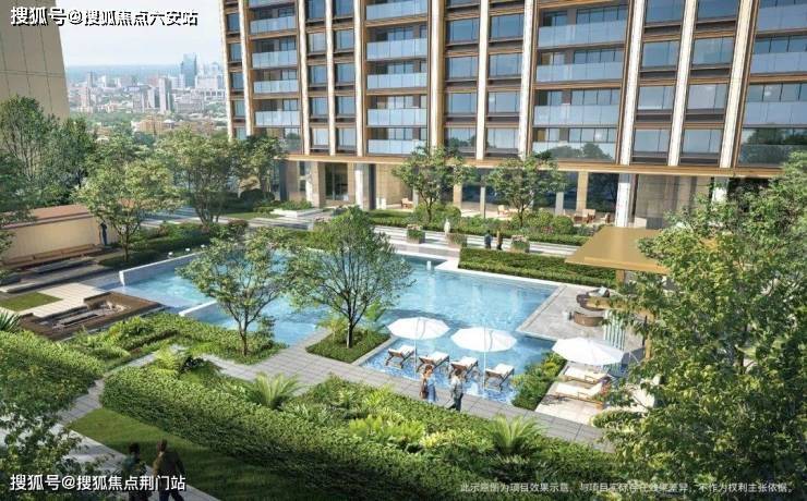 “一轴四境”的景观格局,将大堂、水院、花园、草坪等一一串联,绿洲与水系相伴,归家之路如桃源之境。 板块第一个半封闭式架空层, 兼容瑜伽、 健身、 亲子、 阅读等功能,