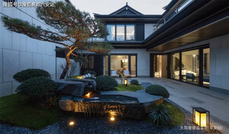 在建筑营造上,由gad张微老师执笔,延续和家园“章法天成,自然而然”理念,大院香璋取法宋代郭熙的“三远论”,结合正脊、戗脊、博风板、悬鱼、鱼鳞瓦等经典中式元素,并巧妙运用石材、玻璃、铝板等材质,诠释中式建筑的虚实相生,平远雅致,带来丰富的视觉体验。