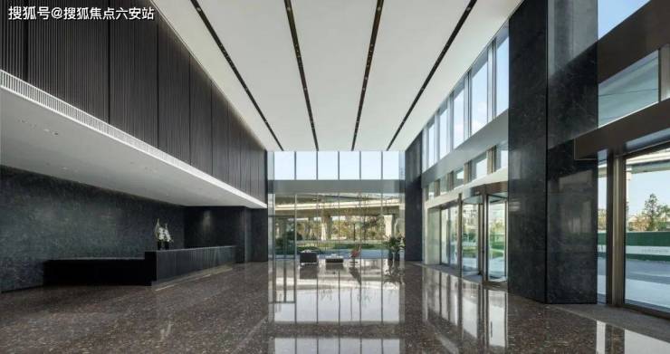 外立面现代玻璃铝板+约10.6米挑高商务大堂,彰显企业高端形象。