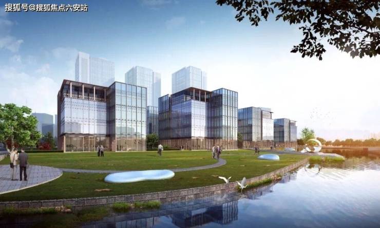 西侧沿河通过建筑、景观与城市设计的有机结合打造12栋花园式总部办公,建筑群如同大小石块组成的绿台庭院,成为城市高层间隙中的净土。成为杭州城北城市弹性成长,与自然生态永续共生的新办公空间。