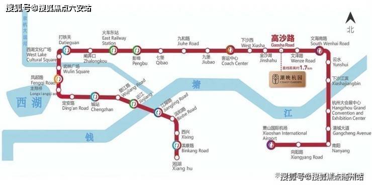 轨道交通方面,项目邻近杭州地铁1号线,距离高沙路站直线距离约1.7公里。通过地铁1号线,1站即可到达金沙天街,8站到达杭州东站,9站直达萧山机场。