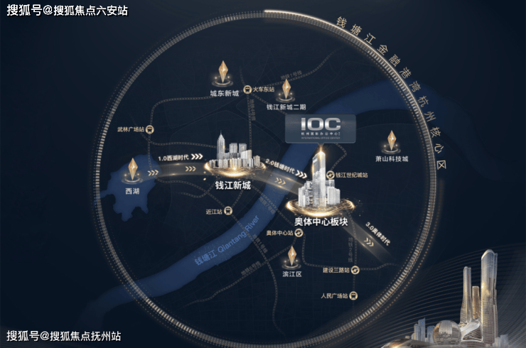 而在奥体摩天大楼集群中,IOC不仅在于极目杭州的城市制高点,更得益于日月同辉、大小莲花皆在目光所及之处的区位优势。同时也以90万方超级综合体,成为杭州目前规划中体量最大的城市综合体,“写字楼+酒店+公寓+大平层+商业街区”业态齐聚,于一线江岸云端,叙写潮奢精神的时代宣言。