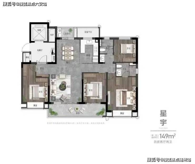 最后,我们来看看伟星·星润名著的尊享级户型,建面约169㎡四房两厅三卫户型。