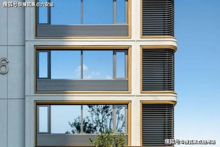 在外立面上,项目南向铝板、局部金属格栅、部分涂料等,还是经典9号库金色,同源滨江海岸系的金色铝板,颜值较高。
