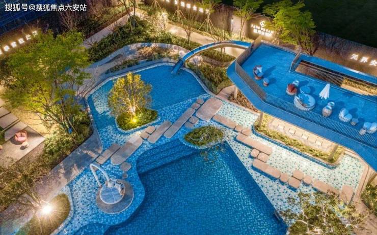 近千方泳池综合区,师从芭提雅cross酒店的异形泳池,绿城将其命名为“映翠泳芯”——不止是泳池,而是构筑了一个泳池综合区,近1000㎡的面积,或躺、或坐;或赏、或嬉,连通那架巨大的水上滑梯,将芭提雅的自然惬意一并收纳。