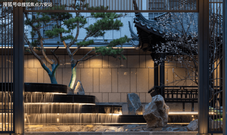 涵雲軒的建筑,吸收江南院落的坡屋顶、山水景墙等中式风骨,同时金属屋面、大面积玻璃幕墙与美国白金石的创新加入,让整个建筑群多了几分国际感。