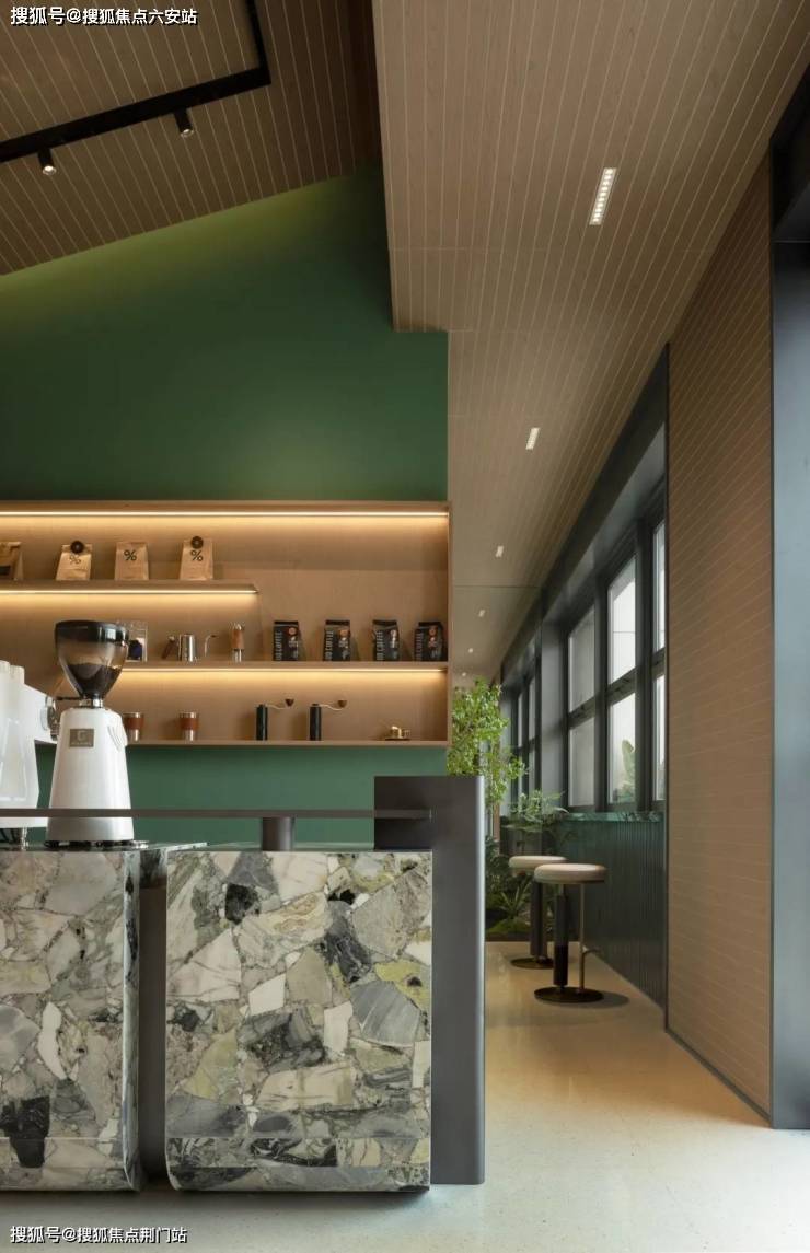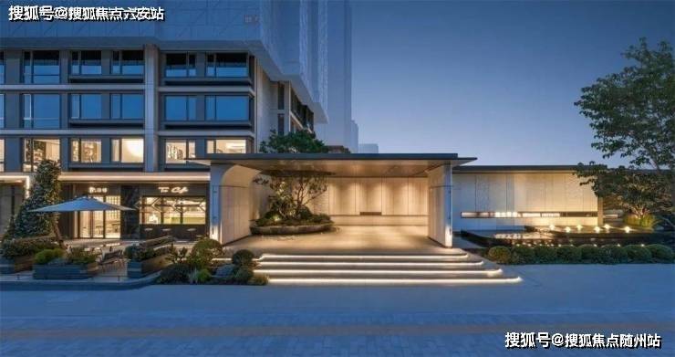 金色飘檐擦亮辨识度,南立面以大面玻璃主打,白、金、蓝灰为主调,配合部分涂料;基部用上了贝金米黄大理石,温润如月光。